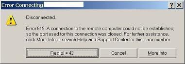 When I try to connect to a GSM modem receives the error: "Connection network based on mobile broadband connection failed with error code: 1" Smart Bro Error 619 A Connection To The Remote Computer Could Not Be Established. December 26, 2014 admin. ... Fetch Doc